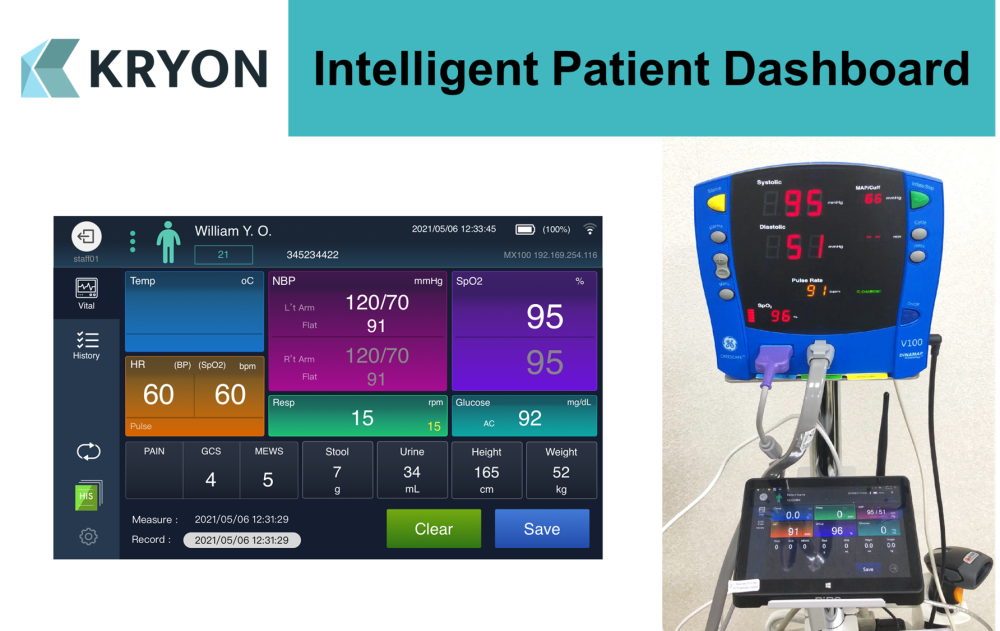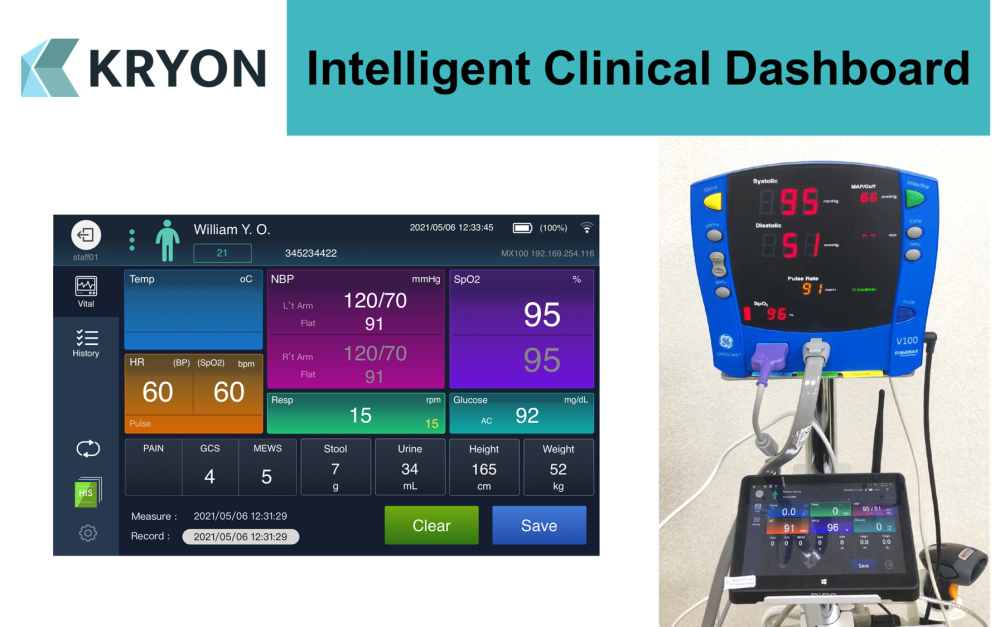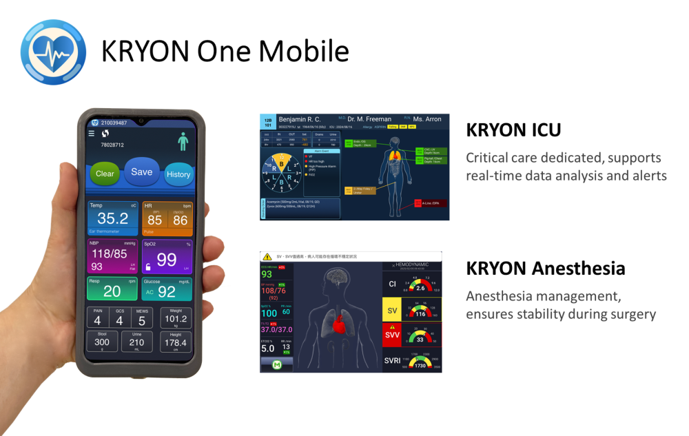 KRYON One Mobile is an intelligent mobile nursing station powered by edge computing, clinical integration, and Bluetooth connectivity. Designed for bedside care and clinical data collection, it connects seamlessly to multi-vendor medical devices and Bluetooth sensors—including blood pressure monitors, pulse oximeters, thermometers, and glucose meters—while integrating with hospital systems such as HIS, NIS, etc. KRON One Mobile enables a mobile, digital, and intelligent workflow that enhances efficiency and data accuracy at the point of care.